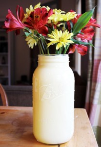 - Αν αποφασίσετε να χρησιμοποιήσετε αληθινά λουλούδια ... απλά βάλτε ένα ποτήρι γεμάτο με νερό μέσα στο βάζο για να μην ξεβάψει εσωτερικά το βάζο σας.