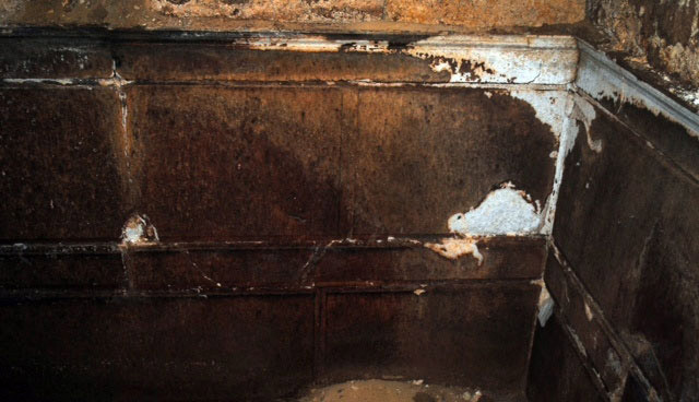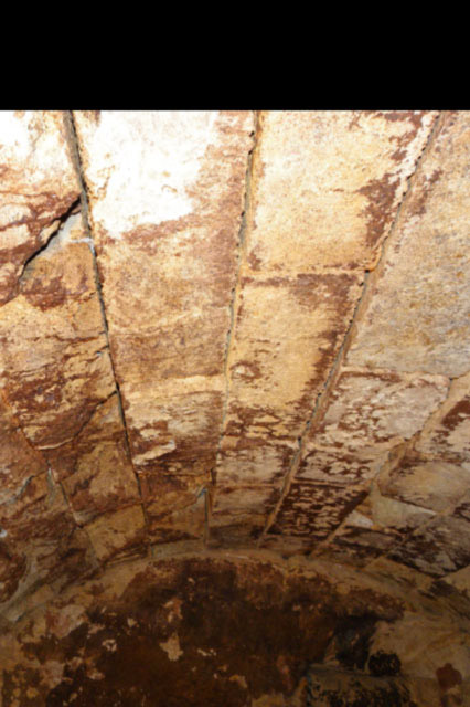 Στο σύνολο σχεδόν των θολιτών παρατηρούνται ρηγματώσεις και επιπλέον σε εκτεταμένες περιοχές, εκατέρωθεν της στέψης, διαπιστώθηκε σημαντική απώλεια μάζας του υλικού. Οι μαρμάρινοι ορθοστάτες περιμετρικά, στο ορατό τμήμα των κατακόρυφων τοίχων παρουσιάζουν συστηματικά αποκολλήσεις τεμαχίων τα οποία εντοπίστηκαν στην επιφάνεια της επίχωσης, φωτογραφήθηκαν, αριθμήθηκαν και περισυνελέγησαν.(φωτο 10). Οι αποκολλήσεις φαίνεται να είναι το αποτέλεσμα έντονης καταπόνησης, πιθανώς από τις μεγάλου ύψους επιχώσεις επί της θόλου. Συγκεκριμένα, το νότιο τμήμα του θαλάμου φορτίζεται από γαίες ύψους 2μ. περίπου, ενώ στο βόρειο τμήμα οι γαίες έχουν ύψος περί τα 12-13μ.