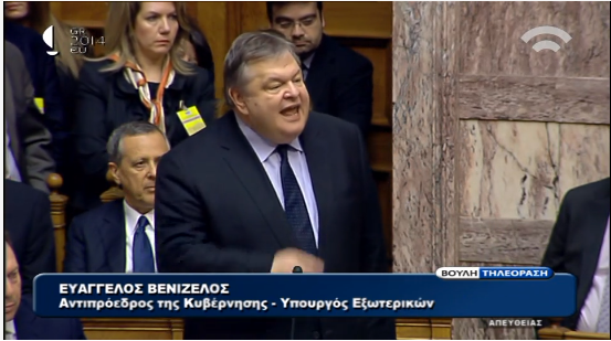 18.45: Τον λόγο πήρε ο κ. Βενιζέλος. Επιτέθηκε σφοδρά στον αρχηγό της αξιωματικής αντιπολίτευσης κ. Τσίπρα και είπε ότι τον "έφτυσε" ο πρόεδρος της Βουλής ενώ εκείνος νόμιζε πως πρόκειται για .. βροχή. Κατέληξε προτείνοντας να αποφανθεί το σώμα δι' εγέρσεως της χειρός και να κηρυχθεί η συνεδρίαση ως περαιωμένη.
