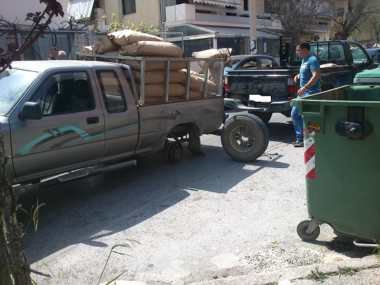 Αυτή την ώρα γίνεται μεταφόρτωση του εμπορεύματος σε άλλο όχημα, ενώ επικρατεί κυκλοφοριακό κομφούζιο, καθώς δεν ήταν δυνατόν να περάσει από το δρόμο λεωφορείο του αστικού ΚΤΕΛ