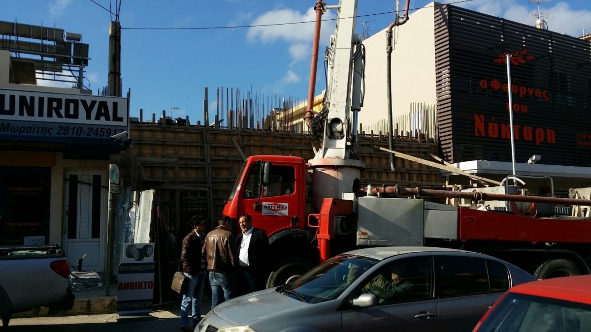 Ο δήμαρχος Ηρακλείου κ.Γιάννης Κουράκης ενημερώθηκε από στελέχη της Τεχνικής Υπηρεσίας και τους επιβλέποντες για την πορεία των εργασιών και μάλιστα παρακολούθησε και τη διαδικασία σκυροδέτησης του φέροντα οργανισμού του κτιρίου.
