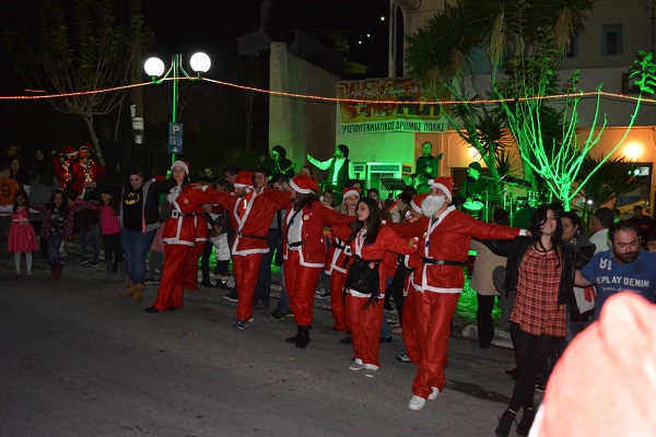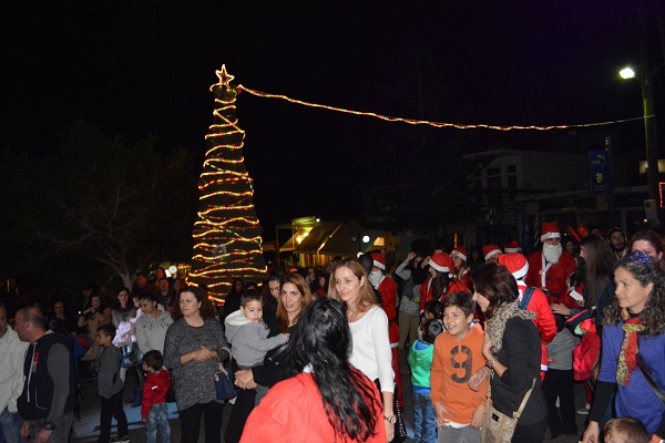 Για αρκετή ώρα και μέχρι να ξεκινήσει η εκδήλωση, ένας ξυλοπόδαρος κλόουν έπαιζε και διασκέδασε μικρούς και μεγάλους. Η εκδήλωση ξεκίνησε περίπου στις 19:00 με τον ερχομό περίπου 40 Άγιων Βασίληδων από την Ομάδα του Santa Run, που ήρθαν ειδικά για την βραδιά, για να δώσουν το γιορτινό χρώμα και να θυμίσουν σε όλους την μεγάλη εκδήλωση τους που θα γίνει στις 27/12/14 στα Χανιά.