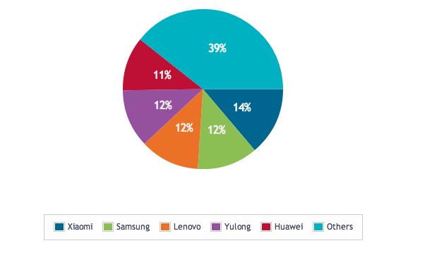 H Samsung Electronics δεν βρίσκεται πλέον στην κορυφή της αγοράς των smartphone στην Κίνα. Η αγαπημένη τοπική εταιρεία Xiaomi, πούλησε λίγο λιγότερα από 15 εκατομμύρια κινητά τηλέφωνα στην Κίνα κατά το δεύτερο τρίμηνο του τρέχοντος έτους, σε σύγκριση με τα 13,2 εκατ. της Samsung, σύμφωνα με την εταιρεία ερευνών Canalys. Η Xiaomi ήταν ο τρίτος μεγαλύτερος πωλητής κατά το πρώτο τρίμηνο και ο έκτος μεγαλύτερος στον κόσμο. Το παρακάτω διάγραμμα δείχνει τις πωλήσεις smartphone στην Κίνα ανά μονάδα και ανά προμηθευτή: