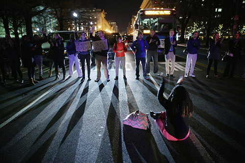 Πρόκειται για την τρίτη συνεχόμενη νύχτα διαδηλώσεων στις μεγάλες αμερικανικές πόλεις. Στην πλειονότητά τους οι συγκεντρώσεις ήταν ειρηνικές, με πολλούς διαδηλωτές να ξαπλώνουν στο έδαφος προσποιούμενοι τους νεκρούς.