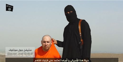 Σε βίντεο που αναρτήθηκε στο διαδίκτυο, το Ισλαμικό Κράτος δείχνει έναν μασκοφόρο άνδρα, με μαύρα ρούχα, που φαίνεται να κόβει το λαιμό του Τζέιμς Φόλεϊ ο οποίος είχε απαχθεί από ενόπλους στη Συρία τον Νοέμβριο του 2012.