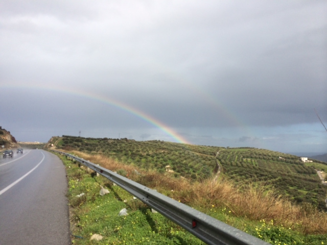 Ένα υπέροχο ουράνιο τόξο έκανε την εμφάνιση του σήμερα το πρωί στον Ηρακλειώτικο ουρανό ,μετά την πρώτη μπόρα που έπεσε λίγο μετά τις 10.