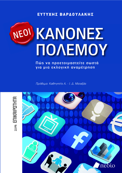 Οι εκδόσεις «Πεδίο» και το βιβλιοπωλείο «Δοκιμάκης» σας προσκαλούν το Σάββατο 26 Απριλίου και ώρα 18.30 στο Επιμελητήριο Ηρακλείου (Κορωνάιου 9) σε μια «ζωντανή συνέντευξη» του Ευτύχη Βαρδουλάκη, συγγραφέα του βιβλίου «Νέοι Κανόνες Πολέμου», Πώς να προετοιμαστείτε σωστά για μια εκλογική αναμέτρηση. Παρών στην «ζωντανή συνέντευξη» θα είναι και ο δημοσιογράφος Γιώργο Σαχίνη.