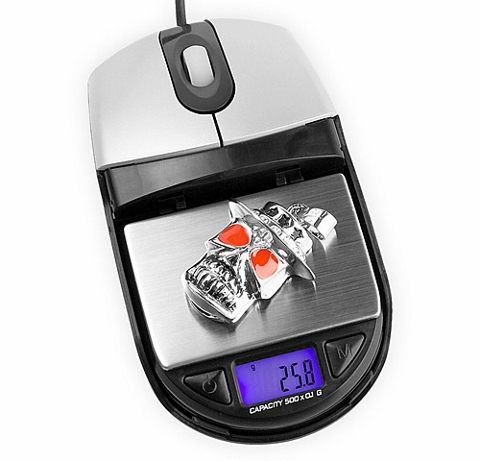 Ένα ασύρματο ποντίκι με ενσωματωμένη ηλεκτρονική ζυγαριά για βάρος από 0,1 έως 500 γραμμάρια